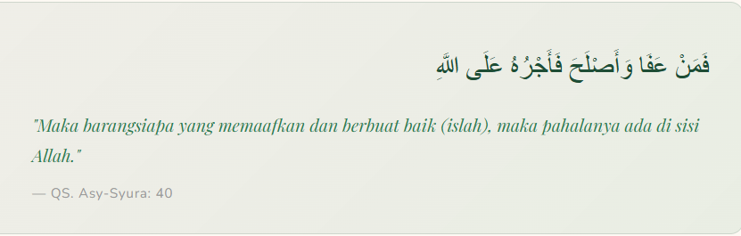 Islam menempatkan maaf-memaafkan bukan sebagai kelemahan, melainkan sebagai puncak kekuatan karakter. Al-Qur’an bahkan menyebutnya sebagai sifat orang-orang yang bertakwa yaitu mereka yang mampu menahan amarah dan memaafkan manusia. Dan inilah yang secara tidak sadar dipraktikkan dalam tradisi ujung ketika seseorang harus mengalahkan egonya terlebih dahulu kemudian bersedia datang duluan, bersedia duduk lebih rendah, bersedia mengucapkan kata yang mungkin terasa berat hanya demi memulihkan hubungan yang lebih besar dari dirinya sendiri.